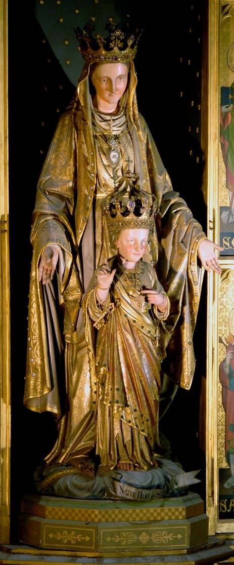 Het genadebeeld OLV van het Heilig Hart in de basiliek, door de Parijse kunstenaar F. Raffle, 1868, gemaakt naar het voorbeeld van het op aanwijzing van Jules Chevalier, 1860 Issoudun, vervaardigde beeld. Foto: Roel Schaeps.