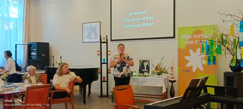 Om 10.00 uur hebben wij de Heilige Mis gezongen in het klooster, en na afloop hebben wij ook nog liedjes gezongen tijdens het koffiedrinken in de Sint Caeciliazaal van de Zusters. Er was een hele leuke ontmoeting en dialoog tussen de zusters en de kinderen.